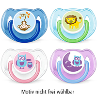 Die kiefergerecht geformten, weichen und symmetrischen Philips Avent Sauger sorgen für eine natürliche Entwicklung von Gaumen, Zähnen und Zahnfleisch. Alle Philips Avent Beruhigungssauger bestehen aus Silikon und sind geruchs- und geschmacksneutral. Änderungen der Farben vorbehalten.