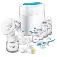 Das Set umfasst alle Produkte, die Sie zum Sterilisieren, zum Abpumpen von Milch und zum Füttern Ihres Babys benötigen.