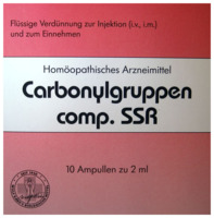 Carbonylgruppen comp. SSR, Flüssige Verdünnung zur Injektion. Anwendungsgebiete: Homöopathisches Arzneimittel, daher ohne Angabe einer therapeutischen Indikation.