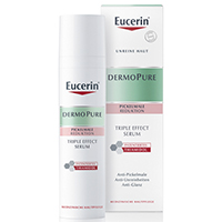 Das Triple Effect Serum hat eine verstärkte Wirksamkeit bei kombinierter Anwendung mit dem Eucerin DERMOPURE Schützendes Fluid LSF 30.