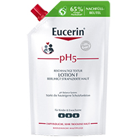 Eucerin pH5 Lotion F ist eine sanfte, aber wirksame Körperpflege, die speziell entwickelt wurde, um empfindliche, trockene Körperhaut widerstandsfähiger und weniger empfindlich zu machen. Das einzigartige Eucerin pH Balance System mit dem pH5 Citratpuffer stellt den natürlichen pH-Wert der Haut wieder her. Gleichzeitig hilft 3% Dexpanthenol die Regeneration der Haut zu stimulieren und deren Widerstandskraft zu bewahren.