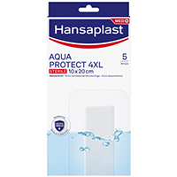 Hansaplast Aqua Protect XL/XXL/3XL/4XL Pflaster sind wasserdichte sterile Wundverbände zur Versorgung mittelgroßer bis größerer Wunden, wie sie im Alltag entstehen können. Sie sind auch für die postoperative Wundversorgung geeignet.