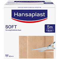 Hansaplast Soft ist ein besonders hautfreundlicher, luft- und wasserdampf- durchlässiger Wundschnellverband für sensible Haut. Das Trägermaterial ist besonders anschmiegsam.