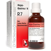 Hepa-Gastreu N R 7. Anwendungsgebiete: Die Anwendungsgebiete leiten sich von den homöopathischen Arzneimittelbildern ab. Dazu gehören: Besserung der Beschwerden bei Leber-Galle-Störungen. Warnhinweis: Dieses Arzneimittel enthält 41 Vol.-% Alkohol.