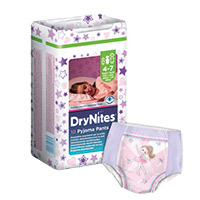 Dry Nites wurden für Kinder entwickelt, die an Enuresis (Bettnässen) leiden, um ihre Kleidung und Bettwäsche zu schützen. Dry Nites Nachtwindeln sind wie Unterwäsche und können unauffällig unter Schlafanzügen oder Nachtwäsche getragen werden. Das für den einmaligen Gebrauch bestimmte Produkt kommt mit der Haut des Anwenders direkt in Berührung und wird in der Regel nur nachts getragen.