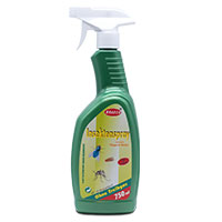 Sprühflasche vor Gebrauch schütteln. Bei geschlossenen Türen und Fenstern in alle Richtungen des Raumes ca. 3 Sprühstöße richten und das Mittel ca. 30 Minuten wirken lassen. Vor dem Sprühen Lebensmittel und offene Getränke entfernen, Aquarien und Terrarien abdecken. Haustiere aus dem Raum entfernen. Kinder fernhalten. Die Aufwandmenge sollte 20 ml pro qm nicht unterschreiten.