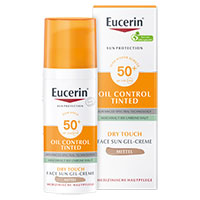 Eucerin Oil Control Tinted Face Sun Gel-Creme LSF 50+ ist ein getönter Sonnenschutz für die tägliche Anwendung für unreine, zu Akne neigende Haut, der sofort einen gleichmäßigen Teint verleiht und sofort und langanhaltend mattiert.