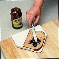 Stabiles Schneidebrett nicht nur zum Streichen von Brot. Vier Saugnäpfe verhindern ein Verrutschen sogar auf feuchten und glatten Oberflächen. Die Aluminiumnägel des Brettes ermöglichen die Fixierung von diversen Lebensmitteln und der seitliche Rand bietet zusätzlichen Halt.- Gewicht: 636 g.