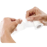 - Weißes Heft- oder Fixierpflaster von der Rolle, längs und quer reißbar, universell verwendbar, zur Fixierung von Kompressen, Binden, Venenkathetern, Kanülen, Drainagen oder Sonden. Der gut haftende, hautfreundliche Polyacrylatkleber hinterläßt keine Rückstände auf der Haut. 100 % Acetat, nicht dehnbar, mit Polyacrylatkleber beschichtet; wahlweise auf Polystyrol- oder Pappkern gewickelt.