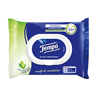 Tempo Feuchte Toilettentücher sanft und sensitive- Mit natürlicher Aloe Vera.