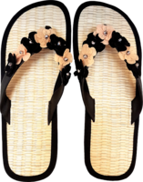 Das Fußbett und die Decksohle bestehen aus Riedgras. Zudem wurde in die Sohle Cassia-Zimt eingenäht, das Obermaterial ist aus Baumwolle gefertigt worden. Der Mittelsteg wurde bei diesem Zehentrenner etwas breiter gewählt. Die Laufsohle besteht aus Gummi.