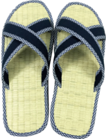 Das Fußbett und die Decksohle bestehen aus Riedgras, zudem wurde in die Sohle Cassia-Zimt eingenäht, das Obermaterial ist aus Baumwolle gefertigt worden. Der Mittelsteg wurde bei diesem Zehentrenner etwas breiter gewählt. Die Laufsohle besteht aus Gummi.